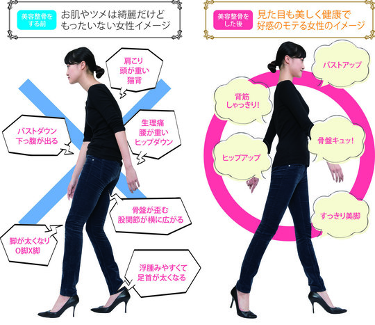 全身矯正のコースでは、誤ったカラダの使い方など悪い習慣を骨格から変える事を目的としています。正しい習慣こそが、骨・筋肉・内臓に良い作用を及ぼし、本来の女性らしい身体のラインを手に入れ、更に維持することができる唯一の方法です。