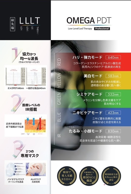 当サロンで使用するLED美容機器は医療現場でも選ばれる高品質の機械で、LEDだけでなくIR「近赤外線」も一緒に照射することができ、より高い効果を発揮します。