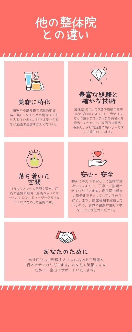 健康なカラダは美しいスタイルを作り、美しいスタイルは輝いた表情を生み出します。笑顔でいる時が一番美しい姿と考えており、笑顔であなたらしく輝けるようにサポートいたします。