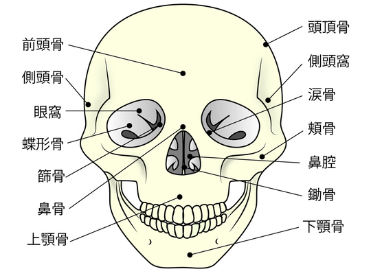 顔の骨(頭蓋骨)は全部で23個の骨からなり、それらの骨はパズルのように組み合ってできています。骨と骨は「縫合」と呼ばれる合わせ目でつながっており、この縫合は諸説ありますが、微細な動きを有していると言われています。