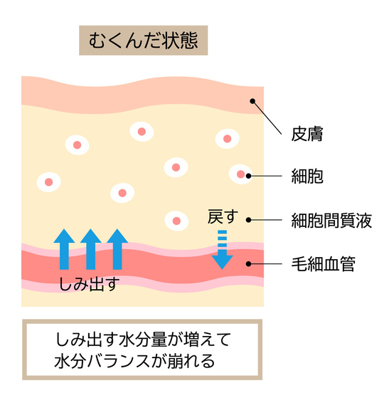 足がむくみが出る原因は、水分や血液、リンパ液などの循環が悪くなり、細胞の隙間などに停滞してしまうからと言われています。