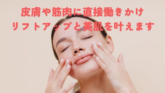 お顔に鍼を刺しそこに特殊な電気を流すことで、普段使われていない凝り固まった表情筋をほぐしお顔を引き締めます。また、血流を促進させ老廃物の排出、お肌の代謝アップを図り美肌効果も発揮します。