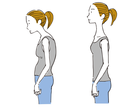 猫背やストレートネックにならないようにするには、まずは普段の姿勢を意識しましょう。
