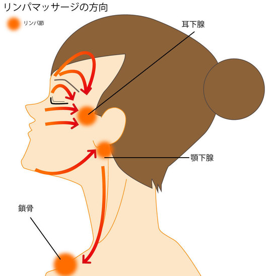 リンパは表皮のすぐ下にあるため、優しくさするだけで流れが整います。肌の上からなぞるように優しいタッチで行ってください。