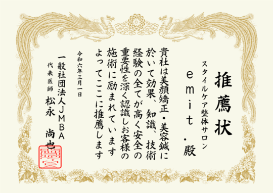 当サロンの小顔矯正は確かな施術効果と安全性が認められ、県内で唯一美容外科医から推薦を頂いている施術となっております。